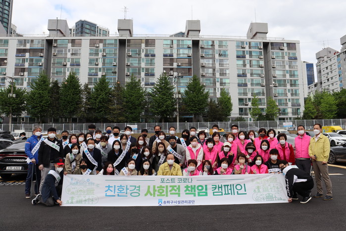 | ▲ 송파구시설관리공단 임직원이 함께하는 '친환경 사회적 책임 캠페인'. (사진제공=송파시설관리공단) |