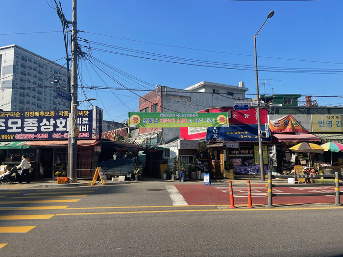 | ▲ 공항시장 입구에 걸린 이주 안내 현수막. (사진=강서구청 제공) |