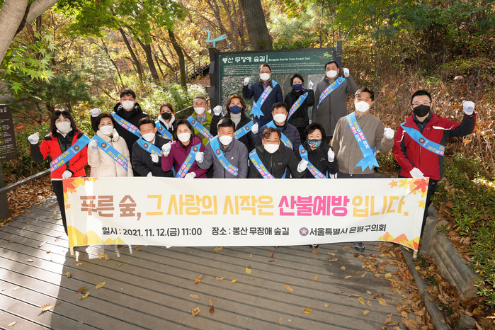 [시민일보 = 이대우 기자] 서울 은평구의회(의장 박용근)가 최근 ‘제8대 은평구의회 개원 3주년’을 기념해, 봉산 무장애 숲길에서 ‘산불 예방 및 환경보호 캠페인’을 실시했다.