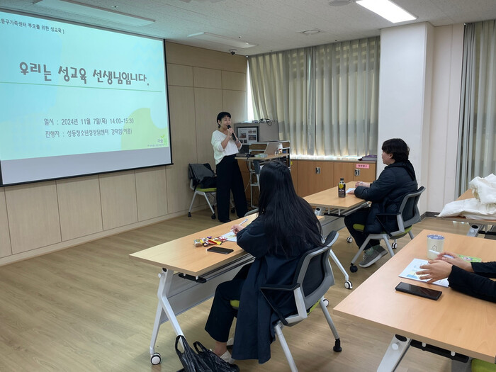 이번 강의는 올해 6월, 찾아가는 가족복지 서비스 향상을 위해 송정동주민센터와 성동구가족센터가 체결한 협약을 바탕으로 최근 급증하는 디지털 매체와 이로 인한 성범죄 노출 가능성이 높아짐에 따라 자녀 성(性)에 대한 양육자의 인식이 무엇보다 중요하다는 취지에서 마련됐다.