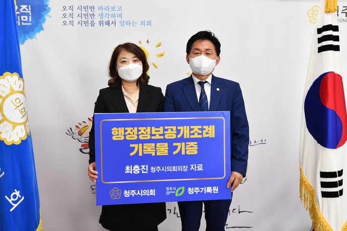 [청주=엄기동 기자] 충북 청주시의회가 최근 청주기록원에 행정정보공개조례 관련기록물을 기증했다.