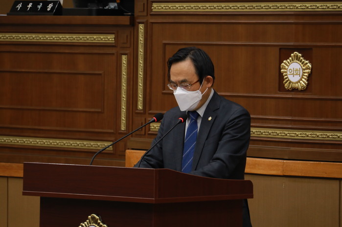 | ▲ 이홍민 의원이 제253회 임시회 제3차 본회의에서 5분 자유발언을 진행 중인 모습. (사진제공=마포구의회) |