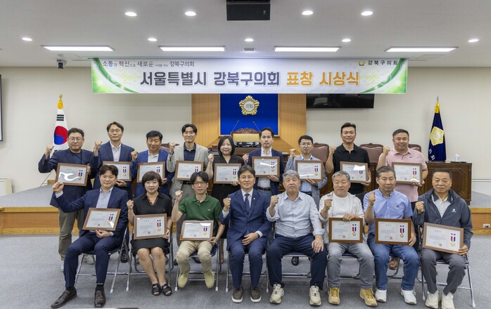 [시민일보 = 여영준 기자] 서울 강북구의회(의장 최치효)가 최근 의회 3층 본회의장에서 강북구체육회 27명에 대한 표창 수여식을 열었다.