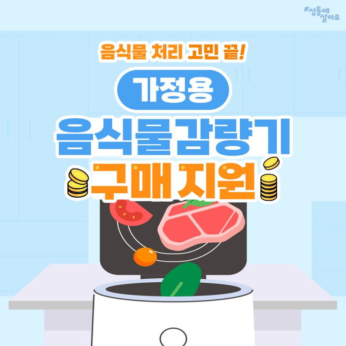 [시민일보 = 박소진 기자] 성동구(구청장 정원오)가 각 가정에서 배출하는 음식물쓰레기의 원천 감량을 위하여 폐기물 소형감량기 구매 지원 사업을 시행한다고 11일 밝혔다.