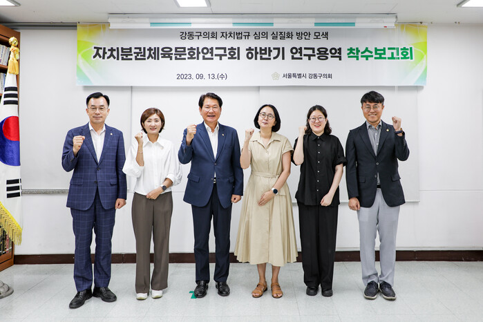 [시민일보 = 이대우 기자] 서울 강동구의회 의원 연구단체 자치분권체육문화연구회가 최근 강동구의회 세미나실에서 ‘강동구의회 자치법규 심의 실질화 방안 모색’을 주제로 한 하반기 연구용역 착수보고회를 개최했다.