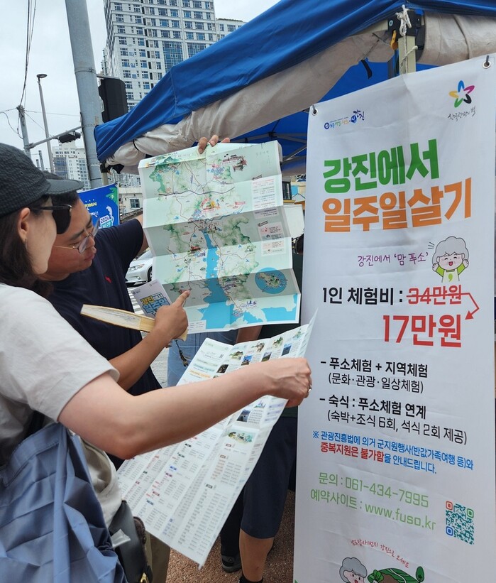 지난 12일부터 오는 8월 3일까지 매주 금요일과 토요일 강진군문화관광재단은 부산 해운대 블루라인파크에서 ‘강진 반값 여행’ 홍보 마케팅 활동을 진행한다.