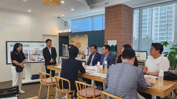 먼저 대표의원인 장규권 의원을 비롯한 고영찬·윤영희 의원 등은 아산시 청년아지트 나와유 배방점을 방문해 아산시 청년센터 관계자 및 충청남도의회 지민규 의원, 아산시의회 김은아 의원과 함께 간담회를 했다.