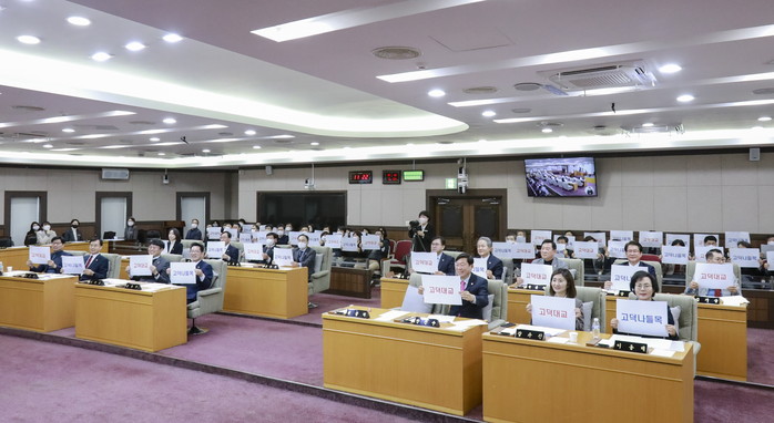 이날 본회의에서는 이희동 의원이 ‘난방비 폭탄, 강동구는 적극 행정을 펼쳐라’, 이동매 의원이 ‘공공급식지원센터 운영 중단에 대한 우려’라는 내용으로 5분 자유발언을 했으며, 원창희 의원이 대표 발의한 ‘고덕나들목 및 고덕대교 명칭 확정 촉구 결의안’을 만장일치로 채택했다.