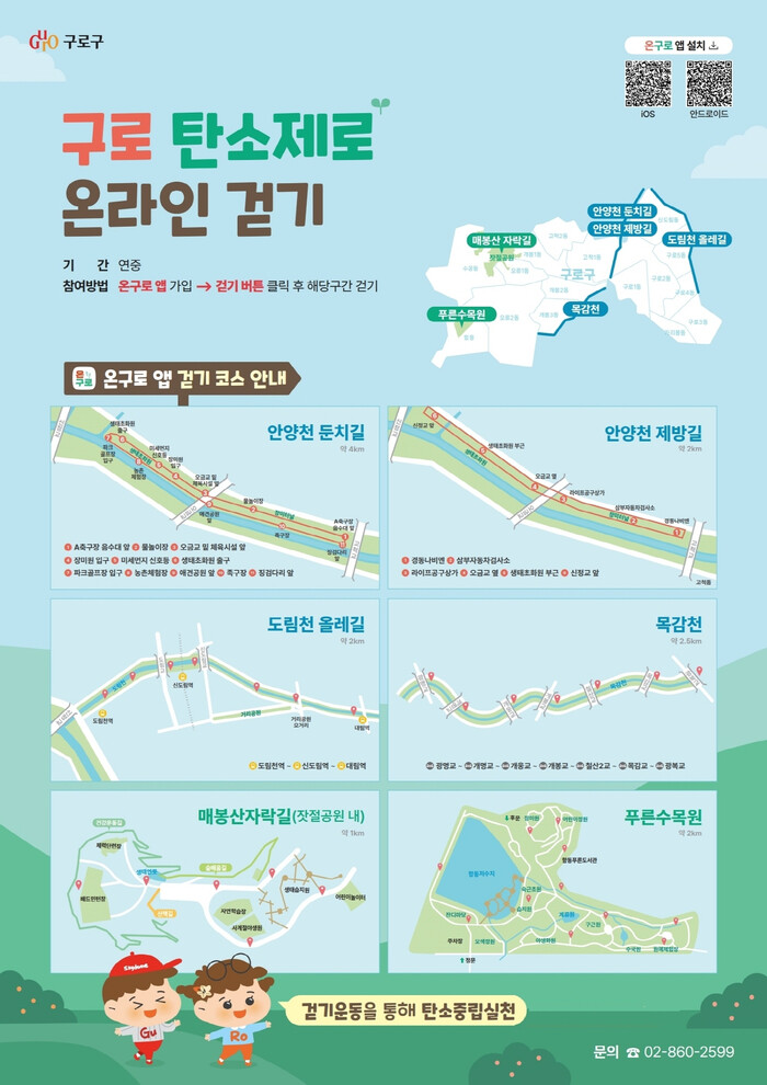 온라인 프로그램은 1km에서 4km 사이의 총 6개 걷기 구간으로 구성되며, 전용 앱 ‘온구로’를 통해 자율적으로 참여할 수 있다.