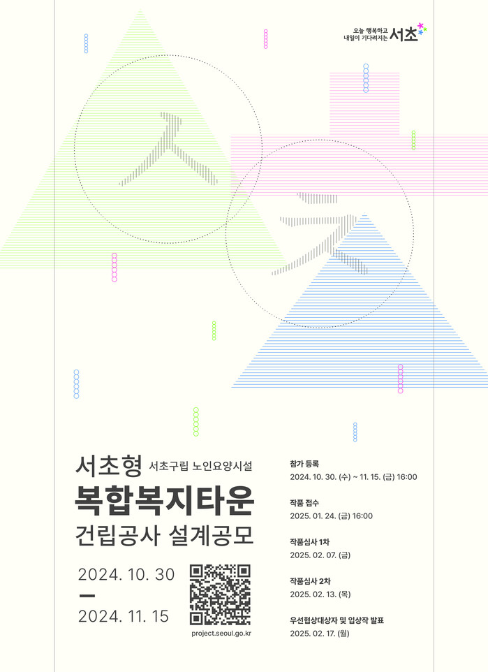 전성수 구청장은 “이번 설계공모를 통해 창의적이고 혁신적인 설계안이 선정되길 기대한다”며 “복합복지타운이 선진형 공공요양시설의 새로운 기준을 제시하고 서초의 새로운 랜드마크로 자리잡을 수 있도록 노력하겠다”고 밝혔다.