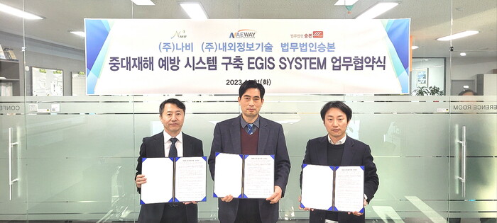 ㈜내외정보기술은 ㈜나비, 법부법인 승본과 함께 중대재해 통합시스템 개발에 대한 3자간 협력관계 구축을 위한 업무제휴협약(MOU)을 2023년 11월 21일 체결했다고 밝혔다.