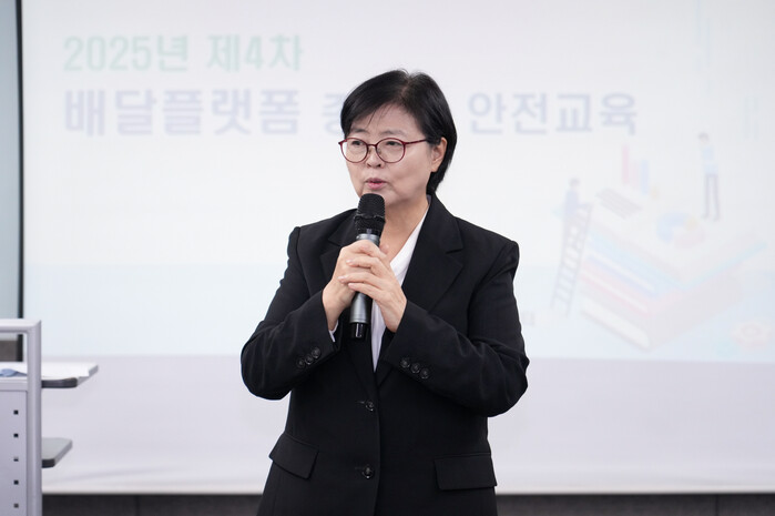 | ▲ 지난 3일 진행된 배달플랫폼 종사자 안전교육에서 이순희 강북구청장이 인사말을 하고 있다. (사진=강북구청 제공) |