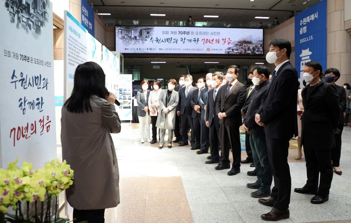 조석환 의장을 비롯한 참석자들은 기념식에 앞서 개원 70주년 기념 사진전 '수원시민과 함께한 70년의 걸음'을 관람했다. 사진전은 15일까지 수원시청 본관 로비(1층)에서 열린다. 또, 사진전은 오는 5월5일까지 시의회 홈페이지를 통해 온라인으로 관람할 수 있다.