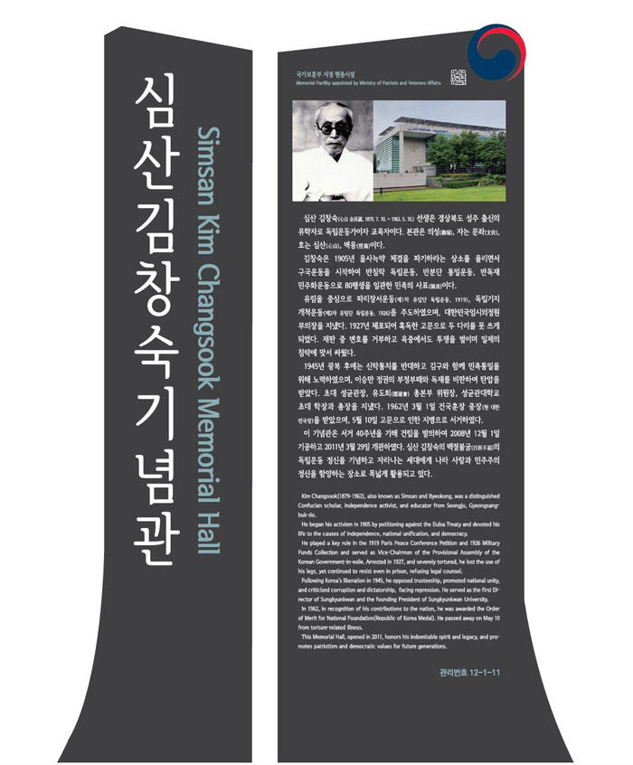 새 안내판 설치는 국가보훈부 서울남부보훈지청과 동국제약의 지원으로 이뤄졌으며, 기념사업회는 앞으로도 심산김창숙 선생의 나라사랑 정신과 민주주의 정신을 후속세대와 시민들에게 고취하는 선양사업과 문화사업을 지속적으로 추진해 나가겠다고 밝혔다.