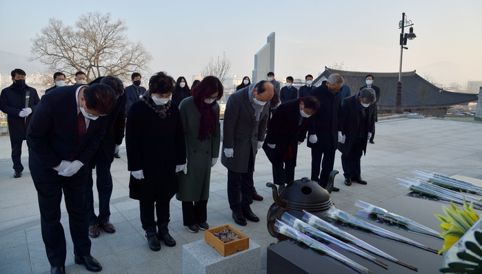 5일 군의회에 따르면 의원들은 충혼탑 참배 후, 코로나19 확산방지에 능동적으로 동참하기 위해 2022년 시무식은 의회운영 관련 유공자 12명에 대한 표창을 수여하는 것으로 대신했다. 표창은 의장실에서 수여됐다.