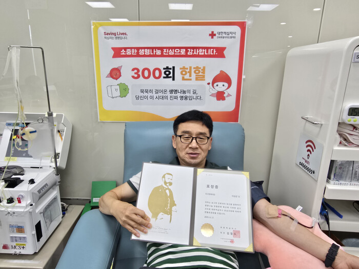 이상균 차장은 “300회의 헌혈은 개인의 성과이기보다 가족과 동료, 함께한 모든 이들의 응원이 있었기에 가능했다”며 “'헌혈은 사랑'이라는 마음으로 건강이 허락하는 한 앞으로도 생명 나눔을 계속 이어가고 싶다”고 말했다.