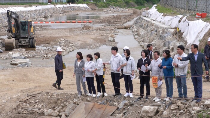 행감특별위원회는 먼저 우산천 수해개선복구사업 현장을 찾아 수해 복구작업 진행 상황을 확인하고 여름철 대비 안전 점검과 지역주민 불편 최소화를 당부했다.