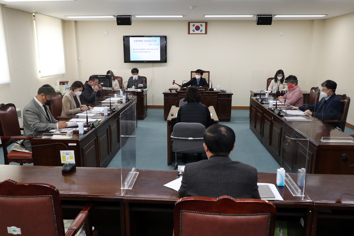 | ▲ 강북구의회가 제255회 임시회 회기 및 의사일정을 확정했다. 사진은 이날 열린 운영위원회에서 회의가 진행 중인 모습. (사진제공=강북구의회) |
