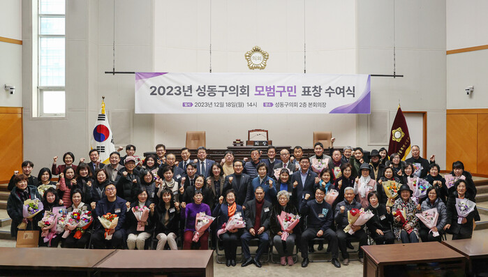 [시민일보 = 홍덕표 기자] 서울 성동구의회(의장 김현주)는 최근 구의회 본회의장에서 ‘2023년 성동구의회 모범구민 표창 수여식’을 개최했다.