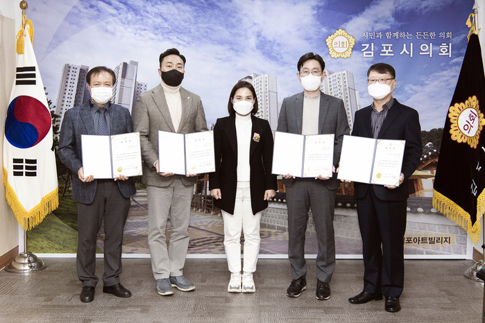 [김포=문찬식 기자] 경기 김포시의회가 최근 의장 접견실에서 ‘2021 회계연도 결산검사위원 위촉장 전달식’을 열고 위촉장을 전달했다.