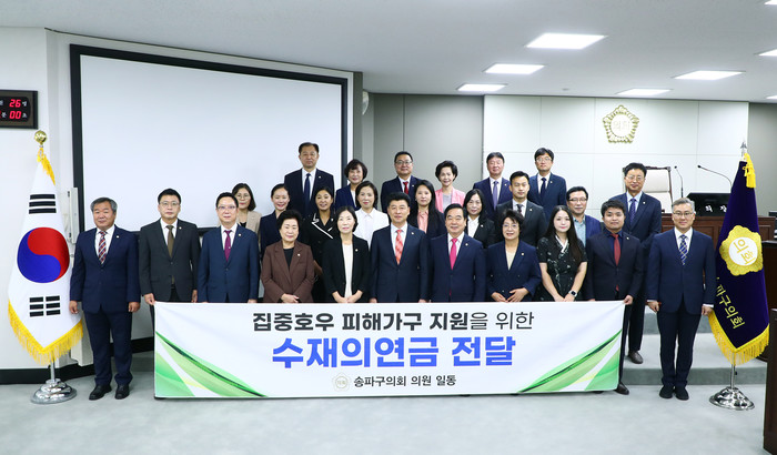 31일 구에 따르면 이번 수재의연금 전달은 송파구의원 26명 전원이 십시일반 모은 것으로 사회복지공동기금에 기탁했다.