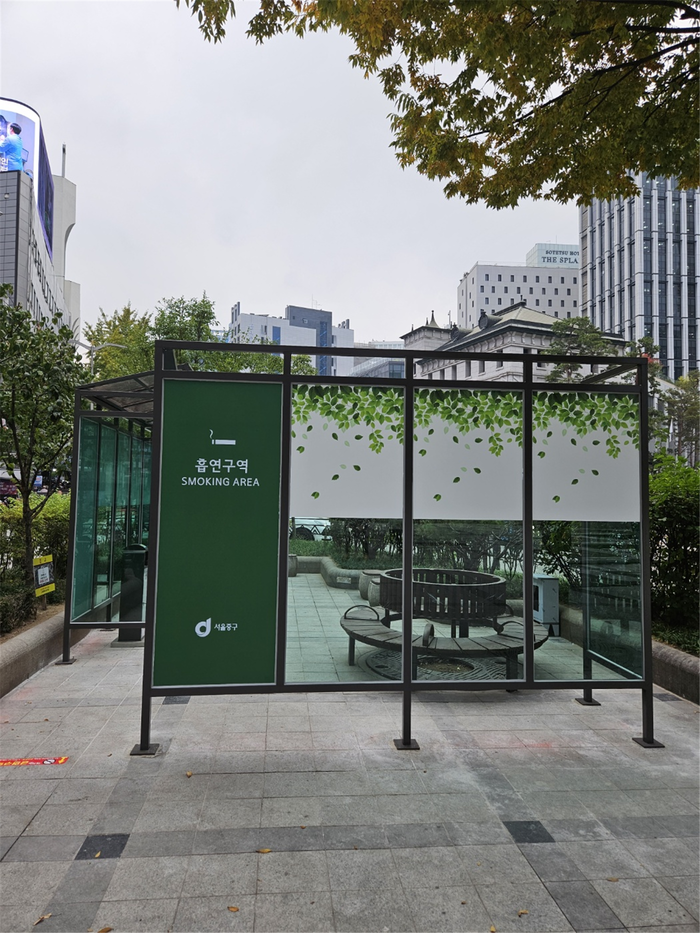 앞서 구는 지난10월25일 한국은행 앞 광장 쉼터에 자연환기식 개방형 흡연 부스를 시범 설치했다.
