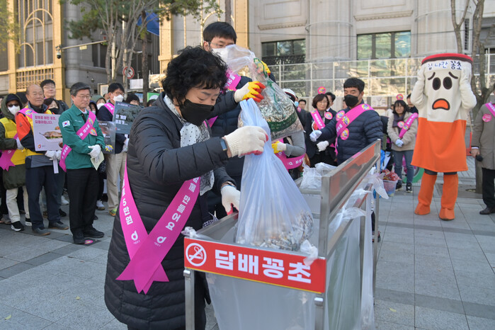 지역 주민, 명동 상인회, 남대문경찰서 및 서울시 관계자 등 200여명이 참석해 ‘담배꽁초와의 전쟁’을 선포하는 결의문을 낭독했다.