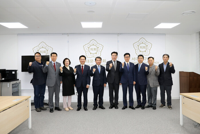 | ▲ 이동화 의장(오른쪽 다섯 번째)이 2022 회계연도 결산검사 위원들과 기념촬영을 하고 있다. (사진=서대문구의회 제공) |