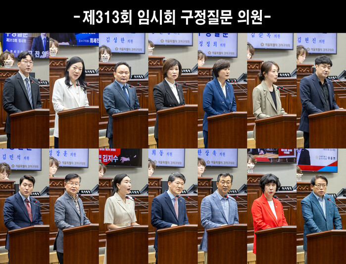 | ▲ 제313회 임시회 제2차 본회의에서 구정질문을 하고 있는 의원들의 모습. (사진=강서구의회 제공) |