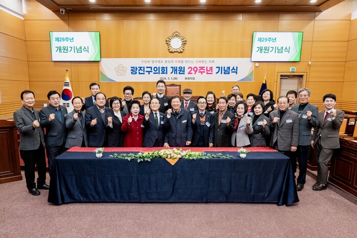 [시민일보 = 여영준 기자] 서울 광진구의회(의장 추윤구)가 최근 본회의장에서 ‘광진구의회 제29주년 개원기념식’을 개최했다.
