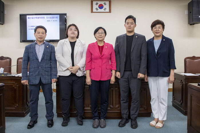 | ▲ 2023년 제1회 추경예산안 심사를 위해 구성된 예산결산특별위원회 의원들의 모습. (사진=강북구의회 제공) |