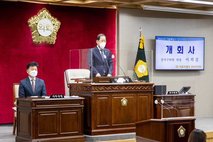 | ▲ 이의걸 의장이 제284회 임시회 개회사를 하고 있다. (사진제공=강서구의회) |