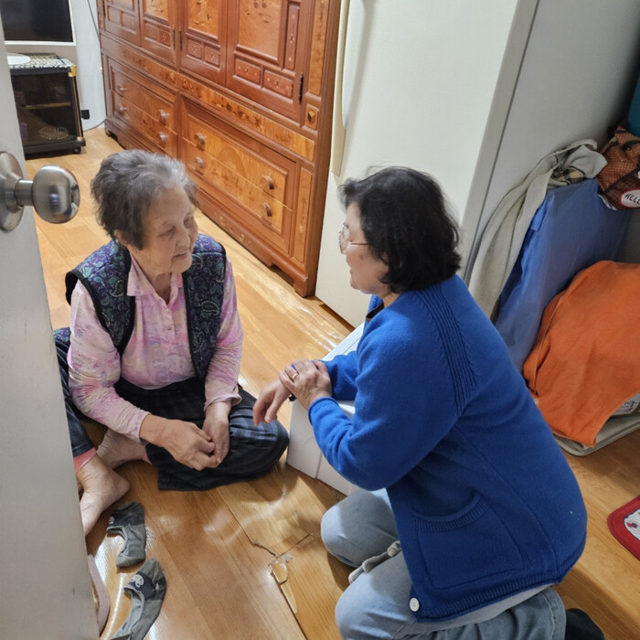 | ▲ '우리동네 돌봄단'이 어르신 가정을 방문해 안부 확인을 하는 모습. (사진=성동구청 제공) |