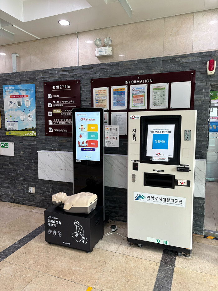 [시민일보 = 문민호 기자] 관악구시설관리공단은 주민들의 응급상황 대처 능력을 강화하고 지역사회 내 안전문화를 확산하기 위해 관내 주요 시설 15곳에 ‘자가학습형 CPR 키오스크(CPR Station)’ 설치를 완료하고 본격적인 운영에 들어간다고 밝혔다.