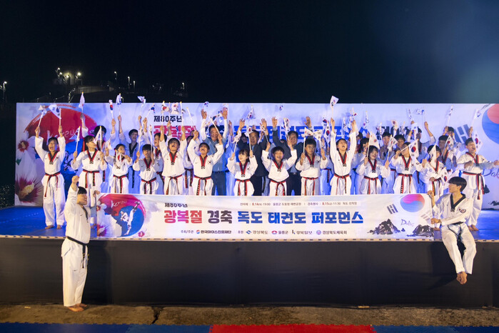 15일 독도 공연에는 독도사랑스포츠공연단이 독도평화호를 타고 입도해 우리 땅 독도 수호의지를 담은 태권도 퍼포먼스를 펼치며 독도 수호와 함께 80주년 광복절을 경축했다.