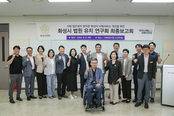[화성=김정수 기자] 경기 화성시의회 의원연구단체인 ‘화성시 법원 유치 연구회’가 최근 YBM연수원에서 연구용역 최종보고회를 열었다.
