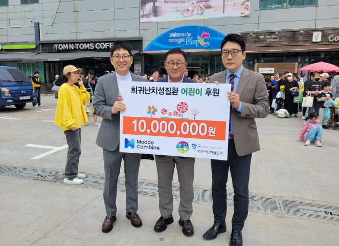 이어 이날 참석한 한국어린이난치병협회 윤완채 위원장은 “선한영향력으로 아름다운 기부문화를 이끈 모두컴바인의 사회공헌활동에 깊은 감사를 전해드리며 우리사회의 기부나눔 실천에 더 하신것에 다시한번 감사를 전한다"고 밝혔다.
