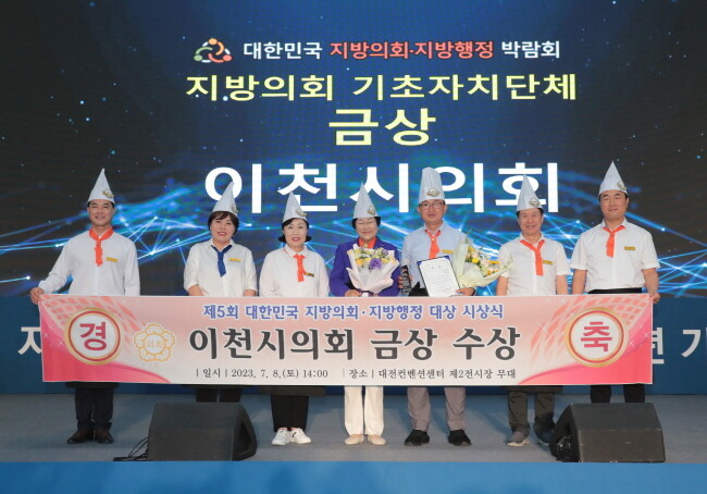 지난 8일 오후 2시에 대전컨벤션센터 제2전시장에서 열린 이번 시상식에서 이천시의회는 지방의회의 자치 발전을 위해 노력하고 민생 중심의 의정활동을 펼쳐 온 공로를 인정받아 기초의회 부문 금상에 선정됐다.