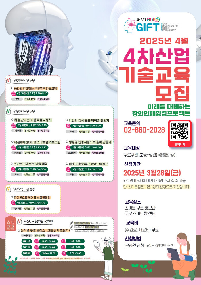 | ▲ 2025년 4월 4차산업 기울교육 프로그램 모집 안내문. (사진=구로구청 제공) |