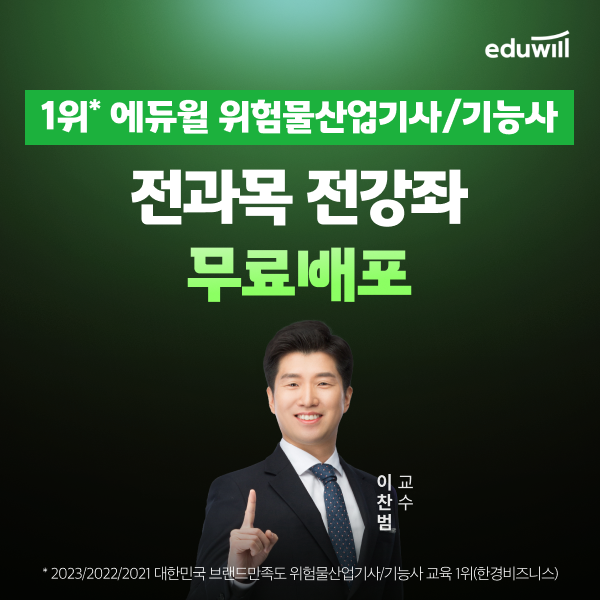 ‘위험물산업기사 전 과목 최신 인강 무료 수강’ 프로모션의 보다 자세한 사항은 에듀윌 위험물산업기사 홈페이지에서 확인할 수 있다.