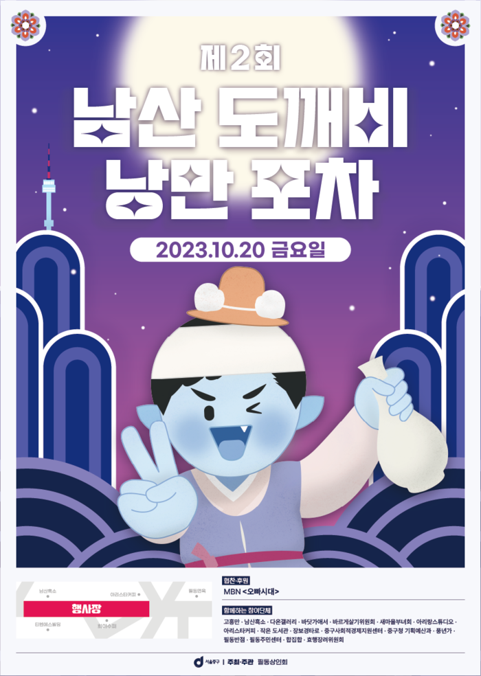 이번 축제는 필동상인회와 지역 주민의 상생과 지역상권 활성화를 위해 기획한 행사로, 서울 중구 필동상인회가 주최·주관하고 MBN 8090오디션 <오빠시대>가 후원한다. 올해 제2회를 맞이한 남산 도깨비 낭만포차는 필동상인회와 지역 주민이 함께할 수 있는 프로그램을 계획하여 작년 대비 더욱 다채로운 행사를 선보일 계획이다.