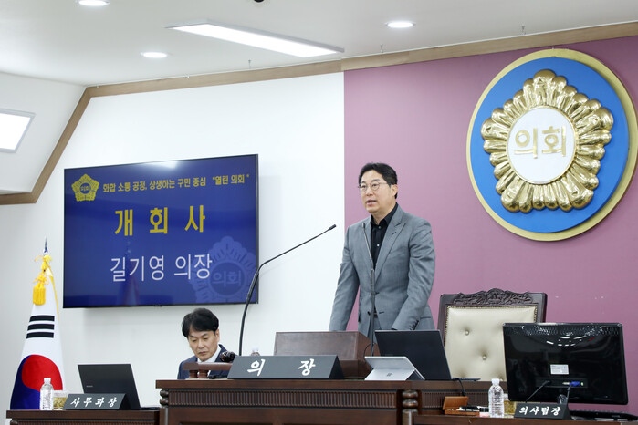길기영 의장은 개회사에서 “이번 2회 추경 사업예산안은 기존의 비해 적은 규모이나 경제 위기가 가중되는 엄중한 시기에 구민의 소중한 세금으로 어렵게 마련된 재원인 만큼 동료 의원님들께서는 합리적이고 투명하게 심사해주시기를 바란다”고 당부하며 “이번 임시회에서도 밀도 있는 심사와 숙의로 안건을 처리해 구민 편익 증진과 삶의 질을 개선할 수 있도록 최선의 노력을 다하겠다”고 전했다.