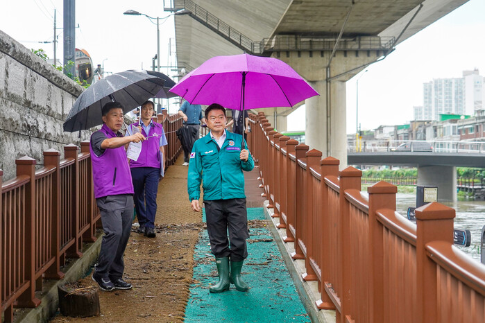 [시민일보 = 이대우 기자] 서울 동대문구(구청장 이필형)가 연일 이어지는 집중호우에 대비해 공사장, 중랑천 일대 현장점검을 실시하는 등 수해 예방에 총력을 기울이고 있다.