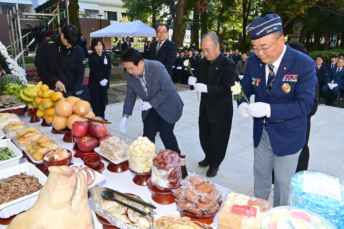진주시는 27일 경상국립대학교 칠암캠퍼스의 ‘6·25참전 학도병 명비’ 앞에서 ‘제3회 6·25참전 학도병 추모제’를 거행했다.