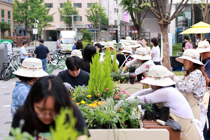 특히 이날 행사에서는 장인홍 구청장이 마을정원사, 주민들과 함께 직접 식물(플랜트박스) 화분 식재에 나서 눈길을 끌었다.