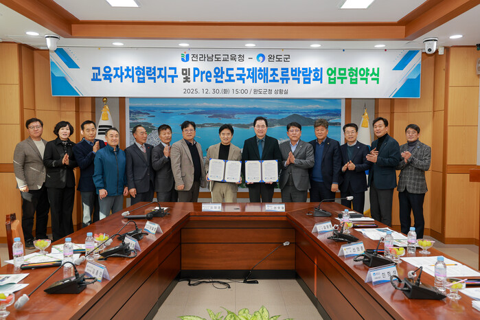 [완도=김현종 기자]완도군은 지난해 12월 30일 전라남도교육청과 교육자치협력지구의 원활한 사업 운영과 2026 Pre완도국제해조류박람회 협력 체계 구축을 위한 업무 협약을 체결했다.