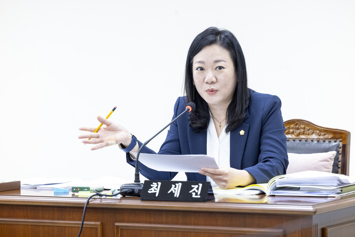 | ▲ 11일 오전 서울 강서구의회에서 열린 제311회 임시회 행정재무위원회 제1차 회의에서 최세진 의원이 발언하고 있다. |