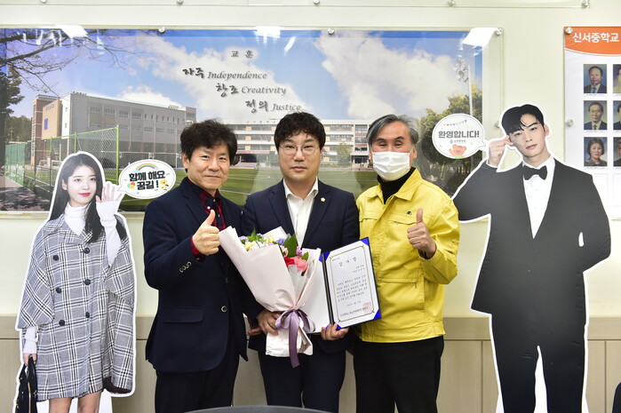 ‘쾌적하고 안전한 신서중학교 만들기 프로젝트’는 석면해체, 냉난방기 및 중연창(벽 높이의 한 중간에 중창이 연이어 있는 것) 교체를 통한 공기질 향상 등 쾌적한 교육환경 조성을 위해 기여한 공로가 큰 인물에게 수여하는 상이다.