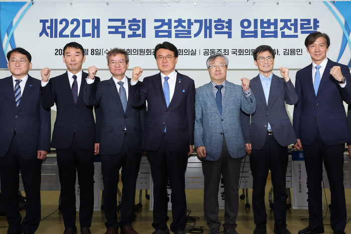 박찬대 원내대표는 "검찰 개혁을 완수하지 못한 대가가 민생경제에도 지대한 영향을 미친다"며 "민주당은 검찰 개혁의 뜻을 모으는 분들과 함께 22대 국회에서 검찰 개혁을 완수하겠다"고 강조했다.