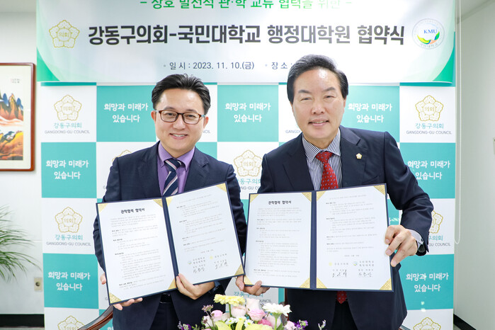 이번 협약을 통해 국민대학교는 강동구의회 소속 의원 및 직원의 직무능력 향상을 위해 석사 학위과정 전문교육을 지원하고, 현안 사항 및 시책 등에 대한 자문 지원, 기타 기관 협력을 위해 필요한 사항을 상호 협의해 추진하게 된다.